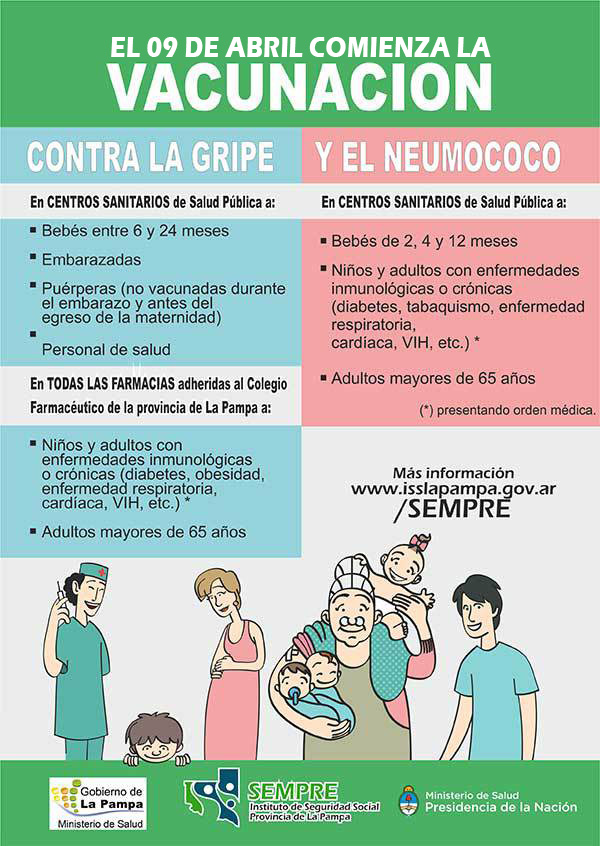 El Servicio Médico Previsional (SEMPRE) informa que el próximo 9 de abril de 2018 comienza la campaña de vacunación contra la gripe y el neumococo.