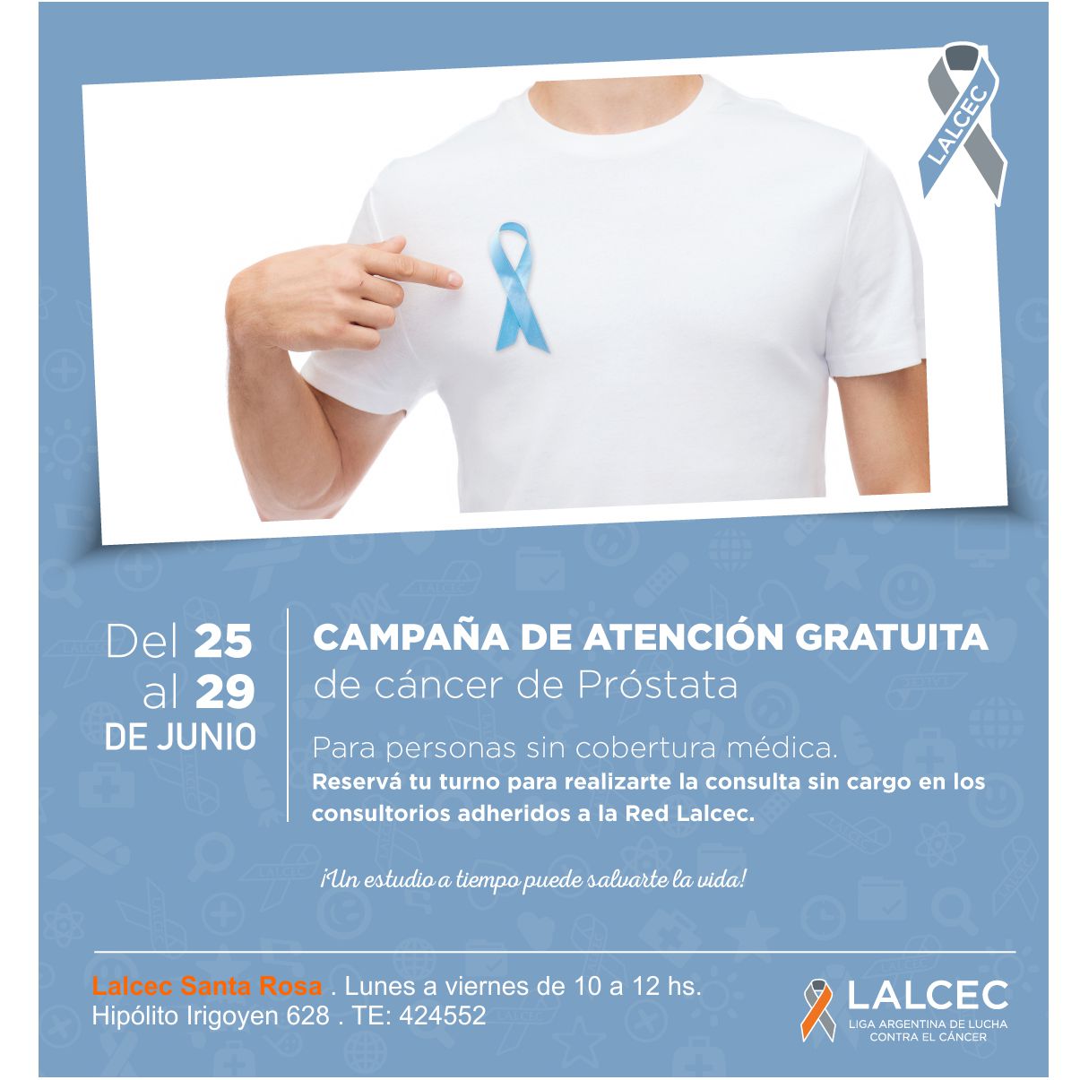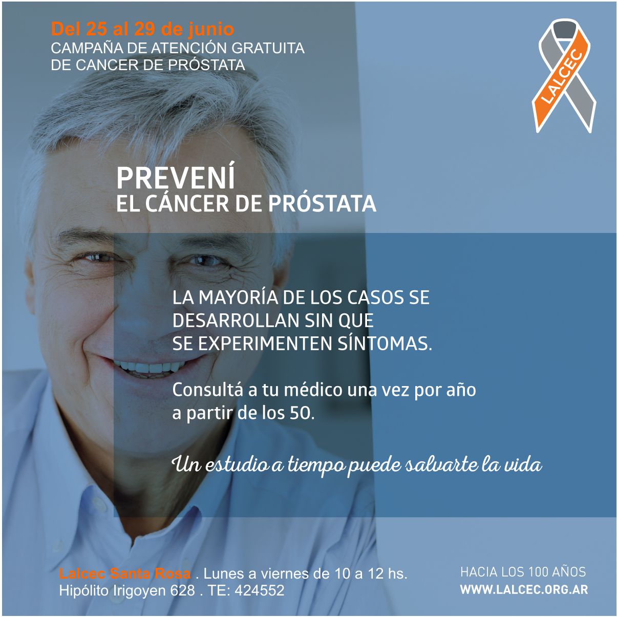 Del 25 al 29 de junio, organizada por LALCEC, se llevará a cabo una campaña preventiva del cáncer de próstata bajo el lema “un estudio a tiempo puede salvarte la vida”.