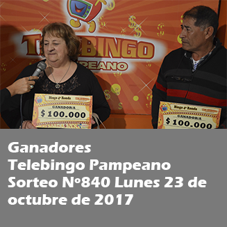 Ganador Telebingo Pampeano Sorteo Nº 840 – Lunes 23 de octubre de 2017