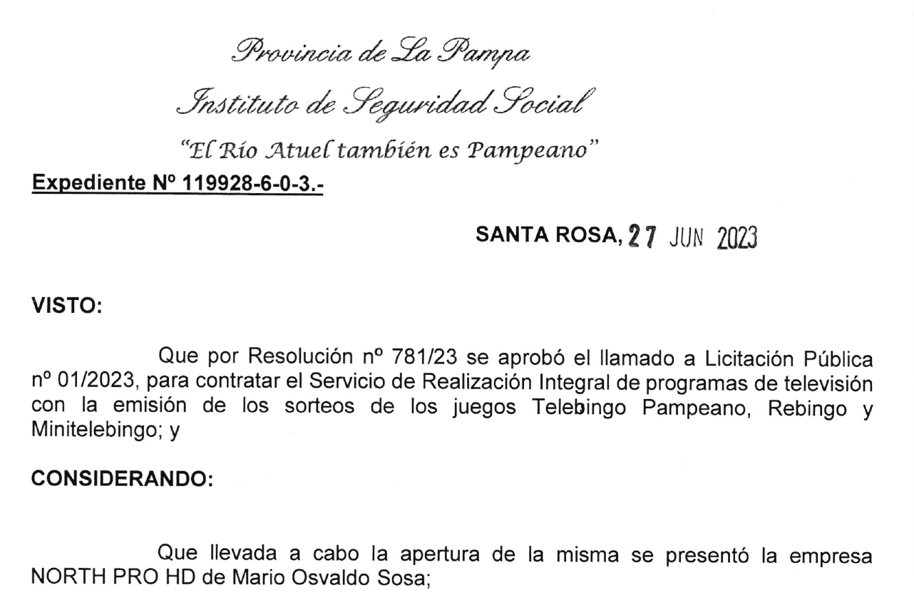 DAFAS – Adjudicación de la Licitación Pública no 0112023 sobre Telebingo Pampeano