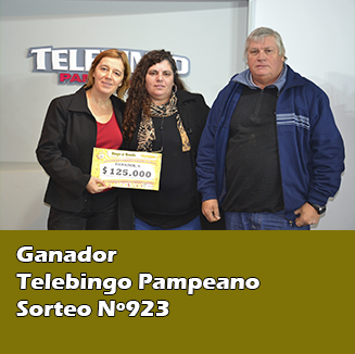 Share List Ganador 1 Telebingo Pampeano Sorteo Nº923 BAUER, Carlos Jesus de Macachín Cupón Ganador Nº 3307- Premio: $125.000 (Bingo compartido) Vendido por Agencia Nº 108 de Paez, Mario Armando.