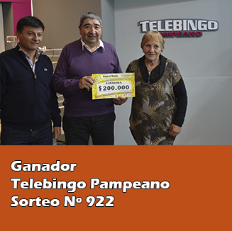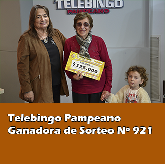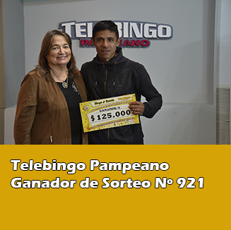 Share List Ganador Sorteo Telebingo Pampeano Nº 921 SAYAGO, Gabriel Ezequiel de Santa Rosa Cupón Ganador Nº 3717 – Premio: $125.000 (Bingo compartido) Vendido por Agencia Nº 110 de Damiani, Roberto Sergio.