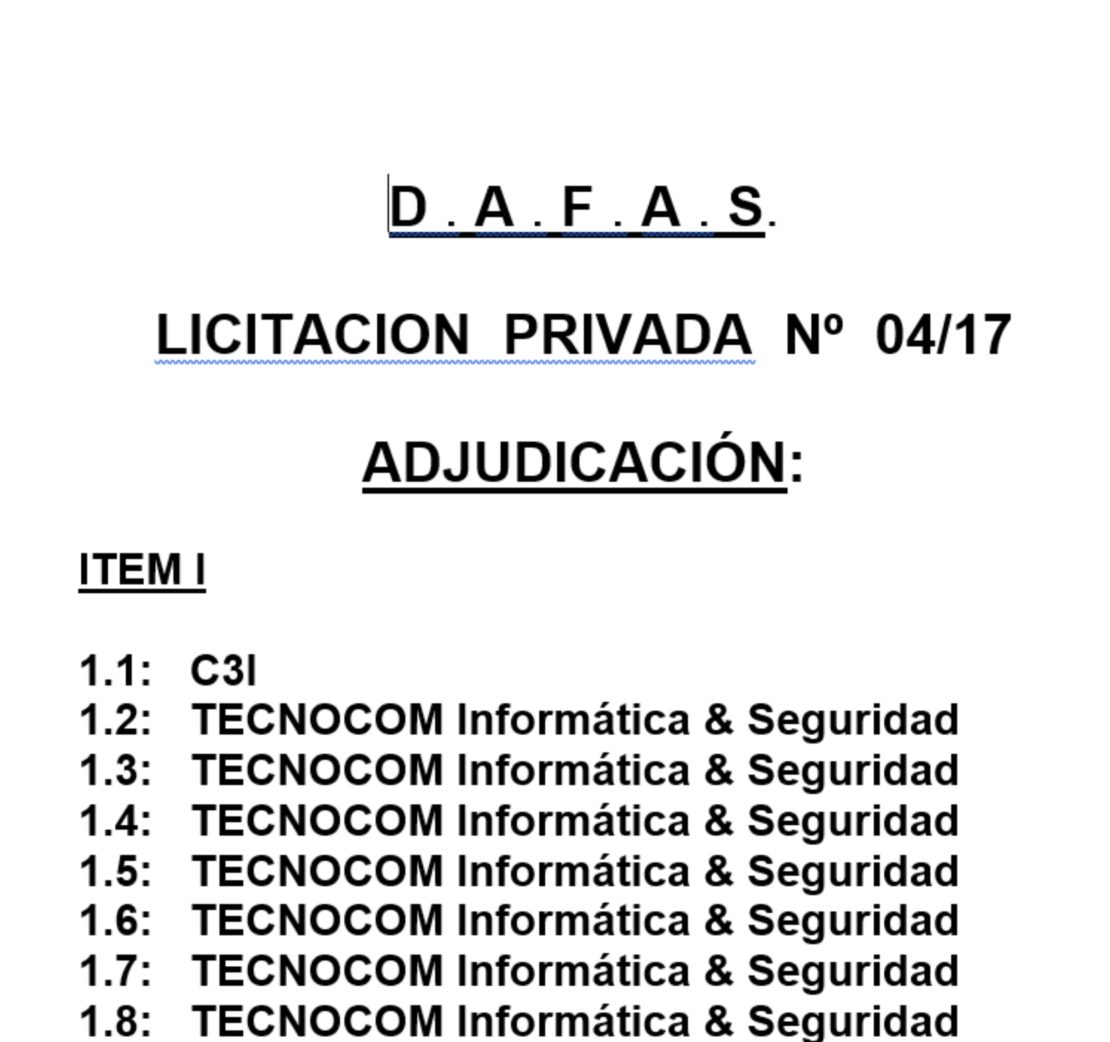 DAFAS – LICITACION PRIVADA Nº 04/17