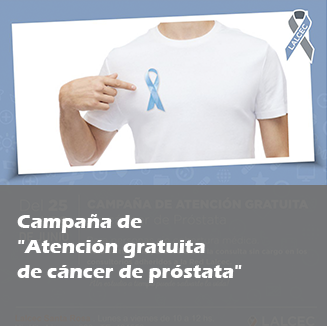 Share List Campaña de “Atención gratuita de cáncer de próstata” Del 25 al 29 de junio, organizada por LALCEC, se llevará a cabo una campaña preventiva del cáncer de próstata bajo el lema “un estudio a tiempo puede salvarte la vida”. Los turnos se solicitan de lunes a