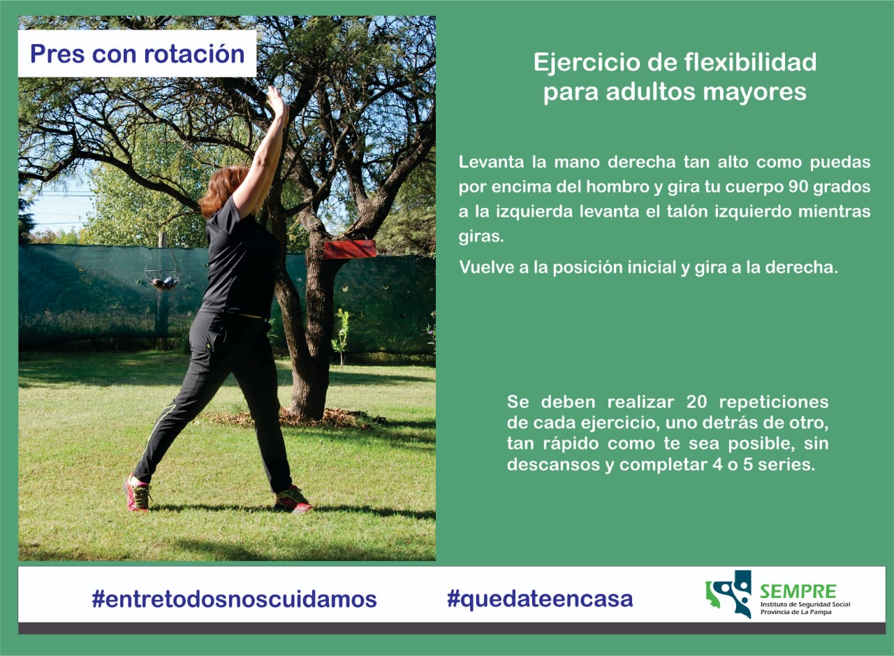 Share List Ejercicios de flexibilidad ideales para nuestros adultos mayores Mientras nos quedamos en casa, la kinesióloga Viviana Fuertes Paz nos propone una serie de ejercicios de flexibilidad ideales para realizar desde la comodidad y seguridad de nuestros hogares. Permiten “estirar los músculos de un modo útil para estos momentos
