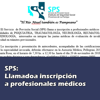 Share List Llamado a inscripción a profesionales médicos El Servicio de Previsión Social (SPS) llama a inscripción a profesionales médicos de las especialidades de PSIQUIATRIA, TRAUMATOLOGÍA, NEUROLOGÍA, REUMATOLOGÍA Y CARDIOLOGÍA, interesados en integrar las juntas médicas de evaluación de invalidez o incapacidad en trámites previsionales. La inscripción y presentación de