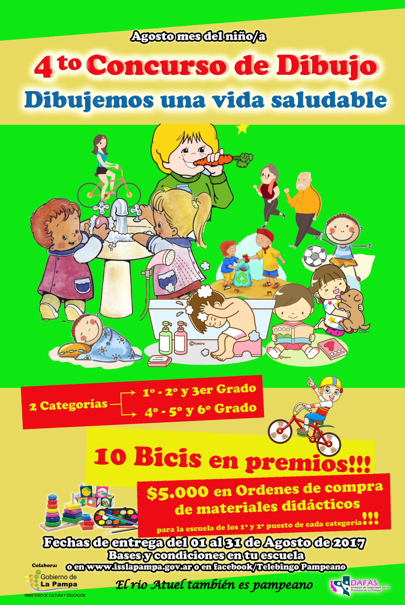 Por cuarto año consecutivo, la Dirección de Ayuda Financiera para la Acción Social (DAFAS) convoca a niñas y niños que asistan al nivel primario -público o privado- de escuelas de toda la provincia, a participar del cuarto Concurso de dibujo que en ésta edición se denominará “Dibujemos una vida saludable”.