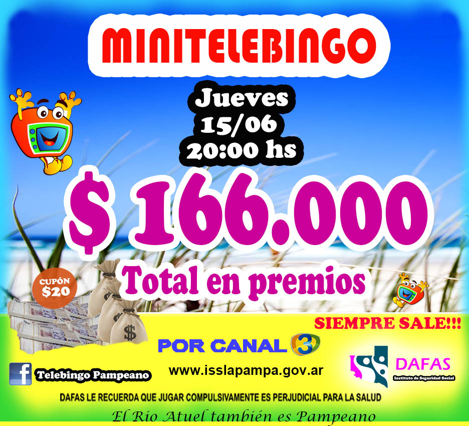 DAFAS informa que el Sorteo de Cupones no Ganadores de Quiniela Pampeana y Minitelebingo, programados para el día jueves 22 de junio de 2017, se realizarán a partir de las 20:00 hs.