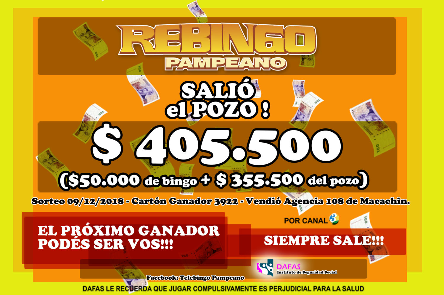 Salió el pozo del Rebingo 10 diciembre, 2018 Pablo Osio Share List Salió el pozo del Rebingo!!!! Sorteo 09/12/18 Cartón Ganador 3922 Vendió Agencia 108 de Macachin.