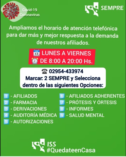 Para dar más y mejor respuesta a la demanda de los afiliados, la obra social SEMPRE amplió los horarios de atención telefónica de lunes a viernes de 8 a 20 horas.