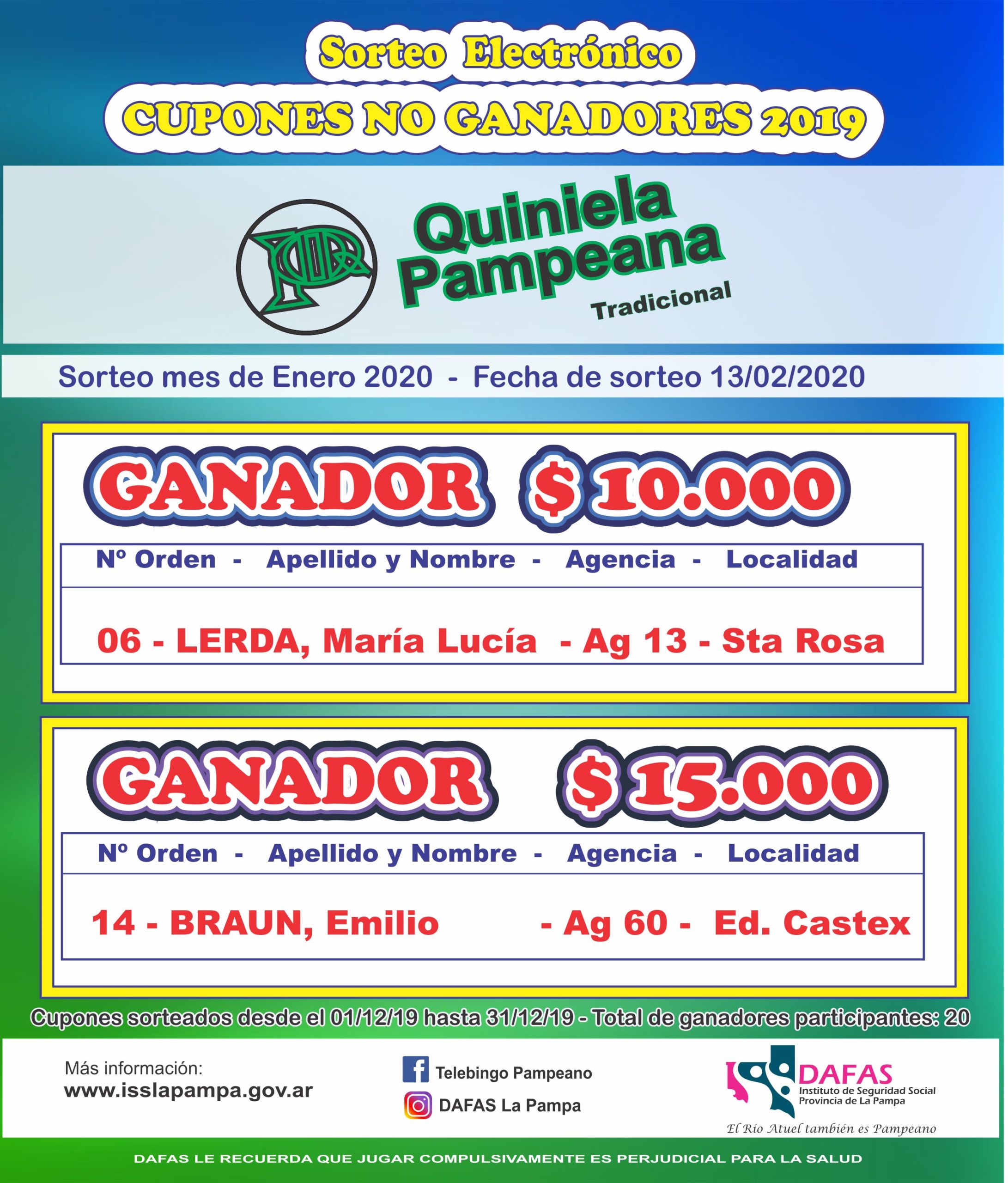 Sorteo mensual Cupones No Ganadores de Quiniela Pampeana 14 febrero, 2020 Nancy Share List ENERO 2020