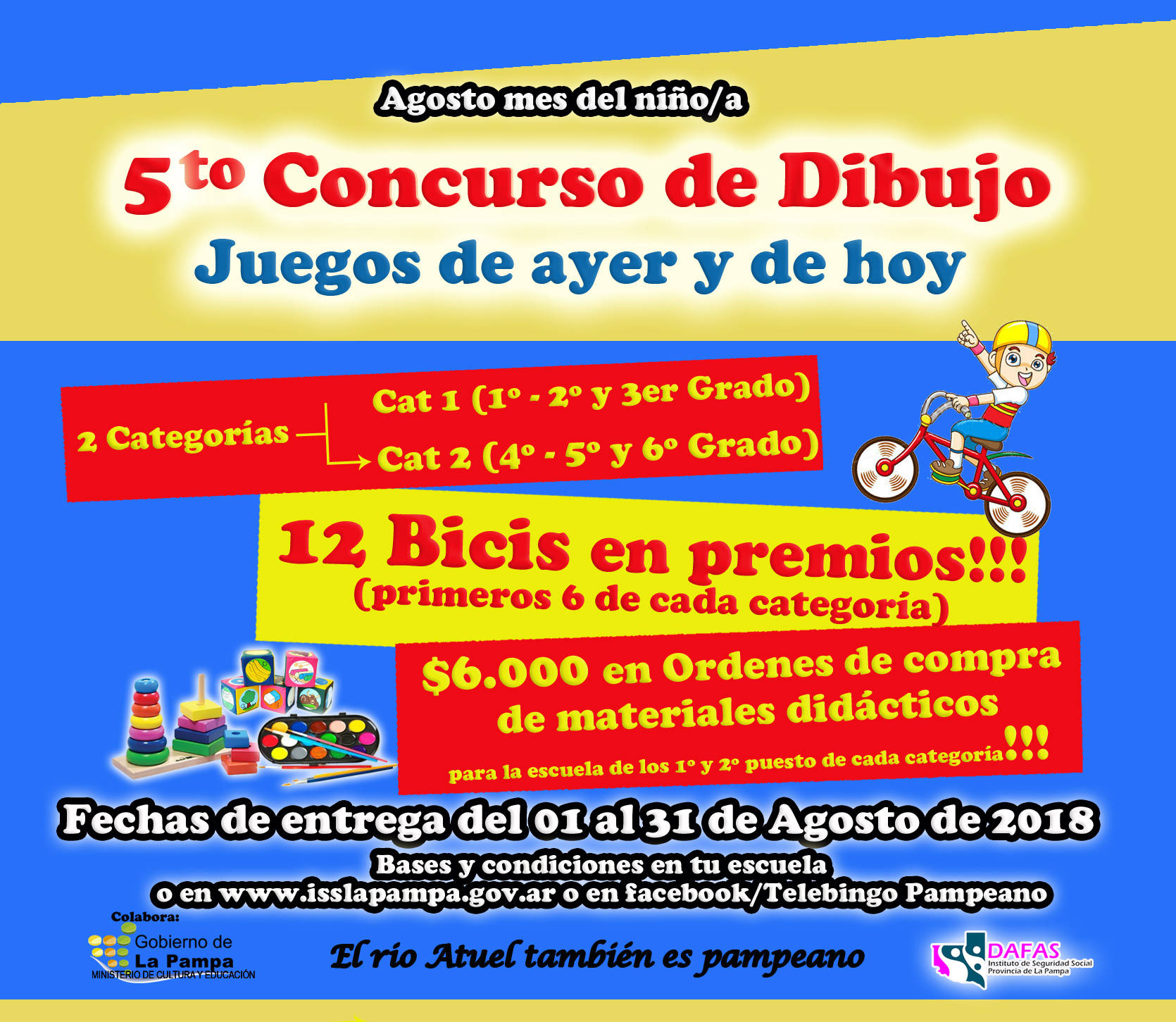 Los/las ganadores serán dados a conocer el próximo domingo 9 de septiembre, en el programa de Telebingo Pampeano que se emite a las 21 horas por Canal 3 y, al día siguiente, a través de los medios de comunicación.